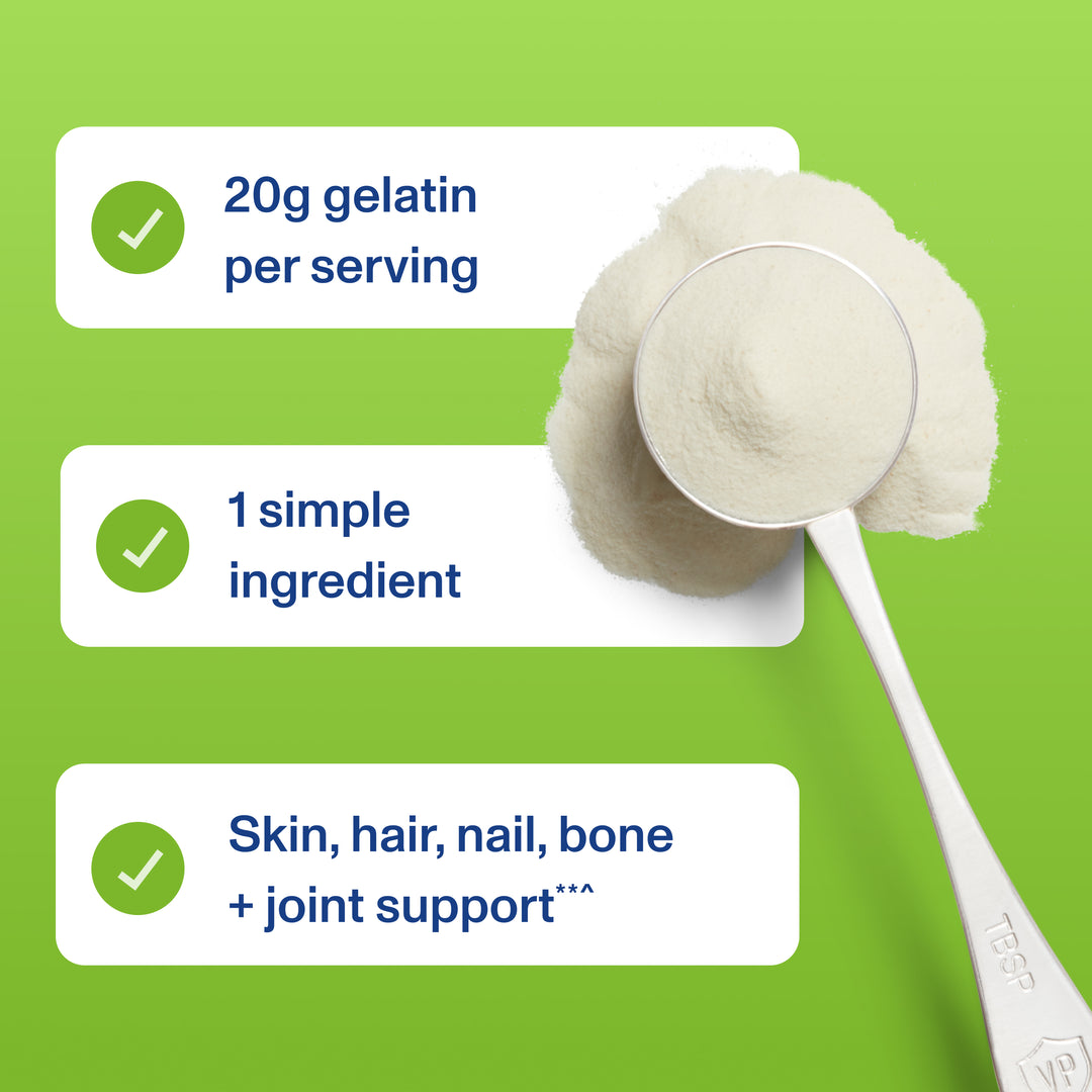 Our Beef Gelatin powder is a pasture-raised, bovine hide grass fed gelatin powder that can be mixed into both hot and cold liquids and supports digestive health.