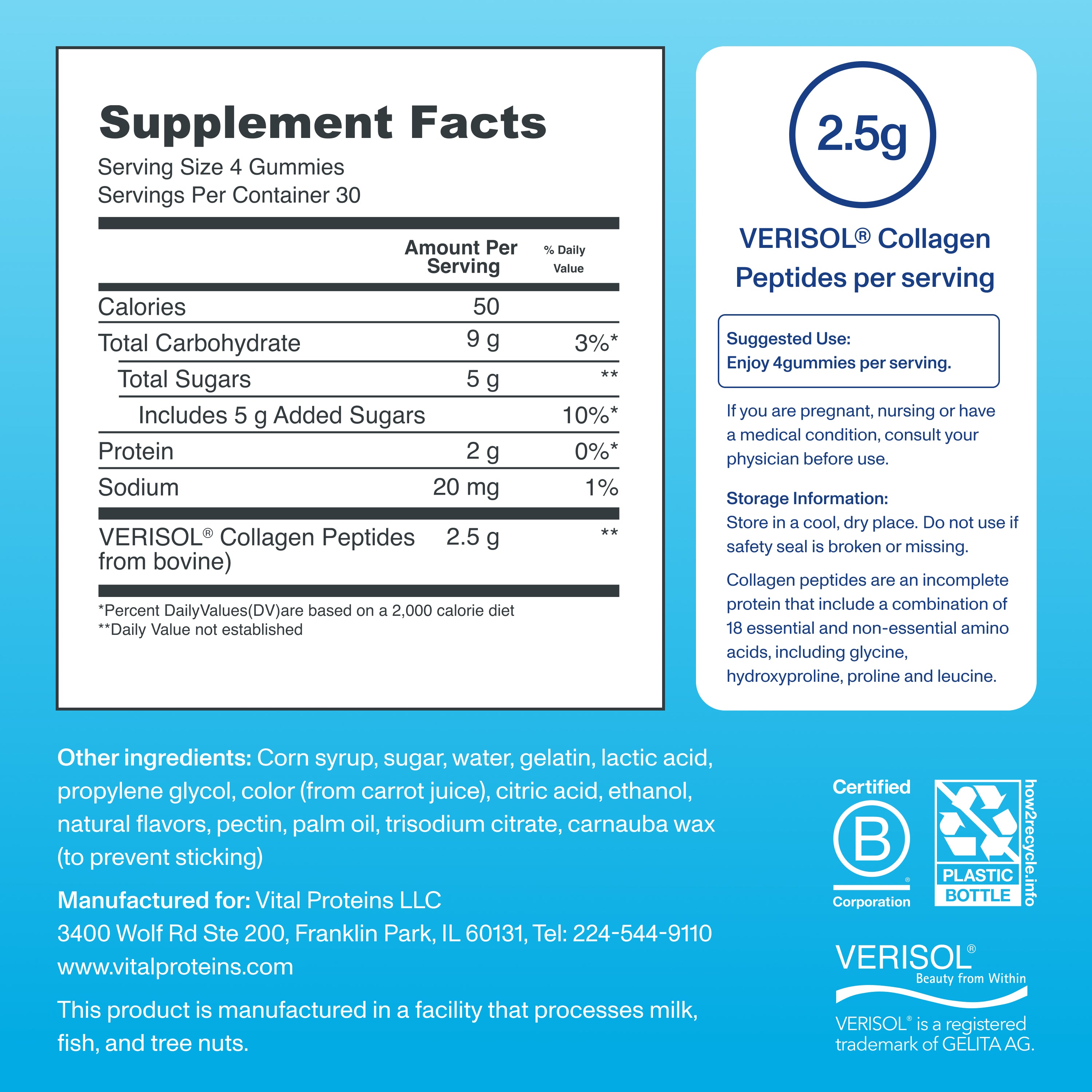 Collagen, meet gummies. We’ve put the benefits of collagen into a delicious, grape-flavored gummy that improves skin, hair & nails and reduces fine lines & wrinkles.^^After 8 weeks of supplementation with VERISOL® bioactive collagen