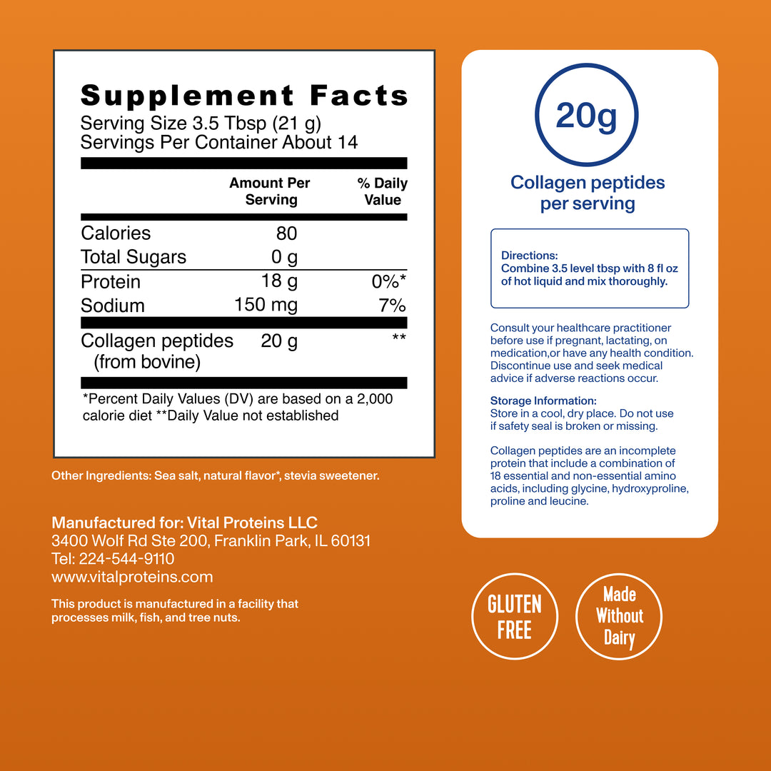 Give your routine a seasonal upgrade with Pumpkin Spice Collagen Peptides. It's the same grass-fed, pasture-raised collagen you know and love to help you look, feel and move your best.** Not only is Vital Proteins® Pumpkin Spice Collagen Peptides made without gluten, dairy or soy, it's also paleo and keto friendly.
